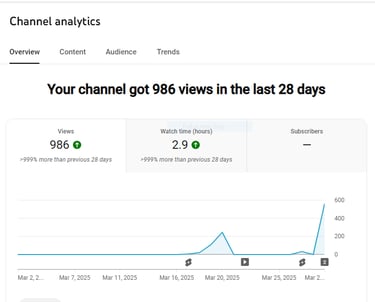 This data is connected to the time I started growing the YouTube channel for my business. To know how this success was determined, see the context below ⬇